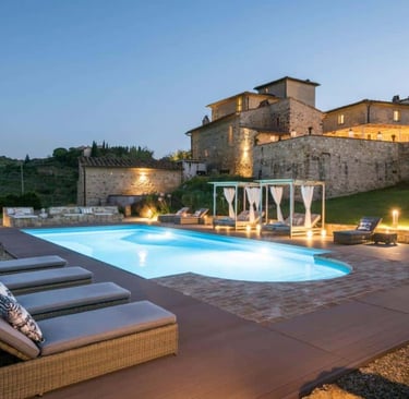 The Dolphy Manor Resort & Leisure Club reflects the essence of Tuscany, with its signature green and cream hues inspired by the region's olive trees and wheat fields.